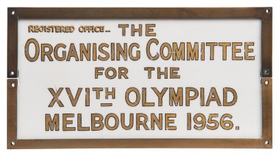 Registered Office.. The ORGANISING COMMITTEE For The XVIth OLYMPIAD, MELBOURNE 1956.', gilt on perspex in metal frame, 28x15cm. -
