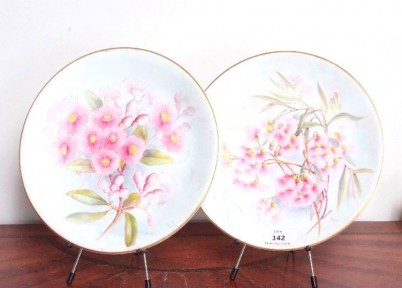 hand decorated by R. Austin, pink gum blossom, 23.5cm D -