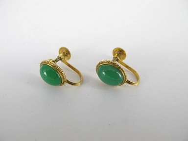 Lot #327 - A Pair of Chrysoprase And 9ct Gold Earrings