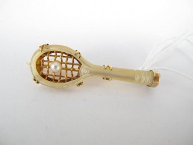 Lot #395 - A Pearl, Mother of Pearl And 15ct Gold Racquet Brooch
