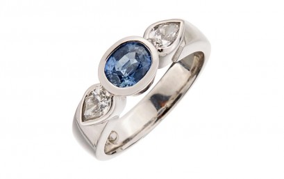 Lot Description:18ct white gold, Ceylon sapphire and diamond ring