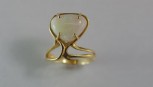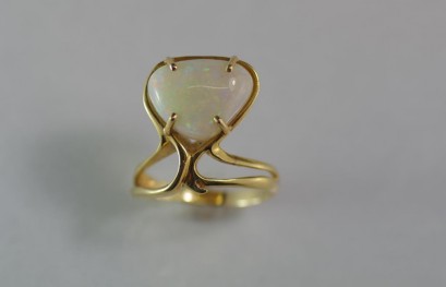 set with a triangular cabochon cut milk opal in a 14ct gold setting, size P/8, copy of valuation available -