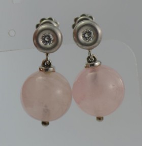 Lot Description:18ct white gold, diamond and rose quartz earrings