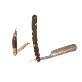 The knife with gilded decoration and the German razor with tortoiseshell covers. (2) -
