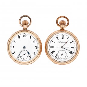 Lot Description:Two Swiss Gold Plated Open Face Pocket Watches
