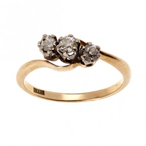 Stamped 18ct and set with three old cut diamonds. TDW .25ct approx. -
