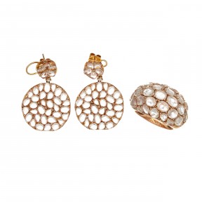 Lot Description:A Modern Yellow Gold 'TAYMA' Pale Pink Quartz Ring and Earrings Set