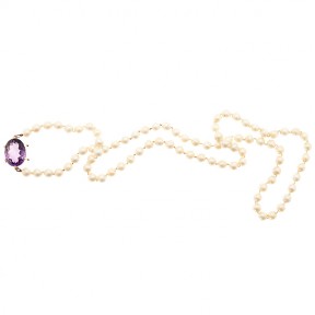 Lot Description:A Long String of Matched Round Cultured Pearls with Amethyst Enhancer