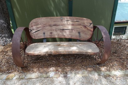 Lot Description:Red gum wagon wheel bench
