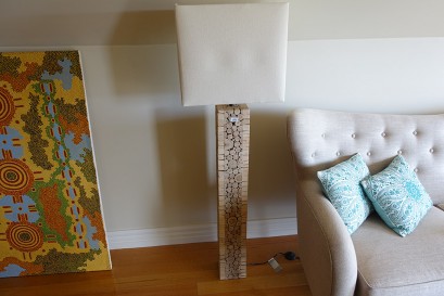 Lot Description:Cork style modernist design standard lamp with shade