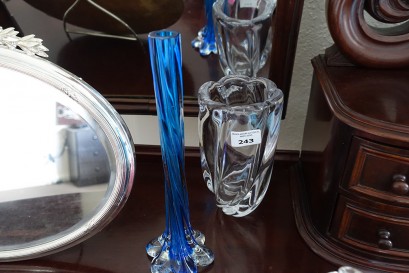signed on base, height 19 cm and blue art glass vase, height 29 cm -