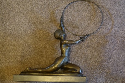 of a draped dancer holding a hoop on a black marble base, height 47 cm -