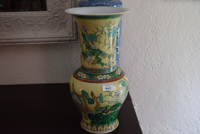 Lot #317 - Chinese Famille Jaune vase with green and yellow glazes vase