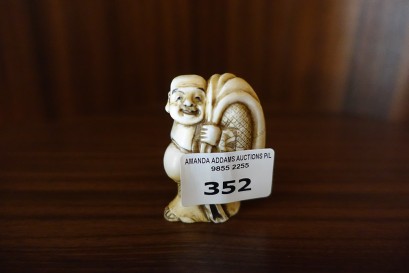 Lot #352 - Signed carved ivory netsuke on a man with a sack