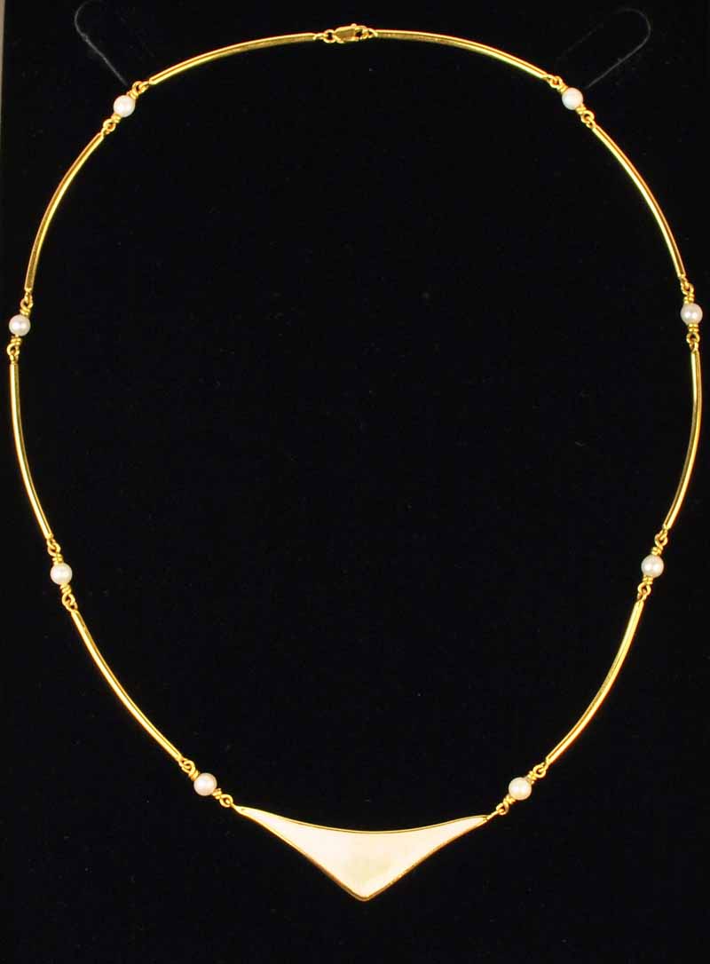 Mother of Pearl Necklace The valuation states the total weight 18.2gms (15.3gms 18ct gold) Purchased from jeweller Craig Peters, hand crafted See independent valuation -
