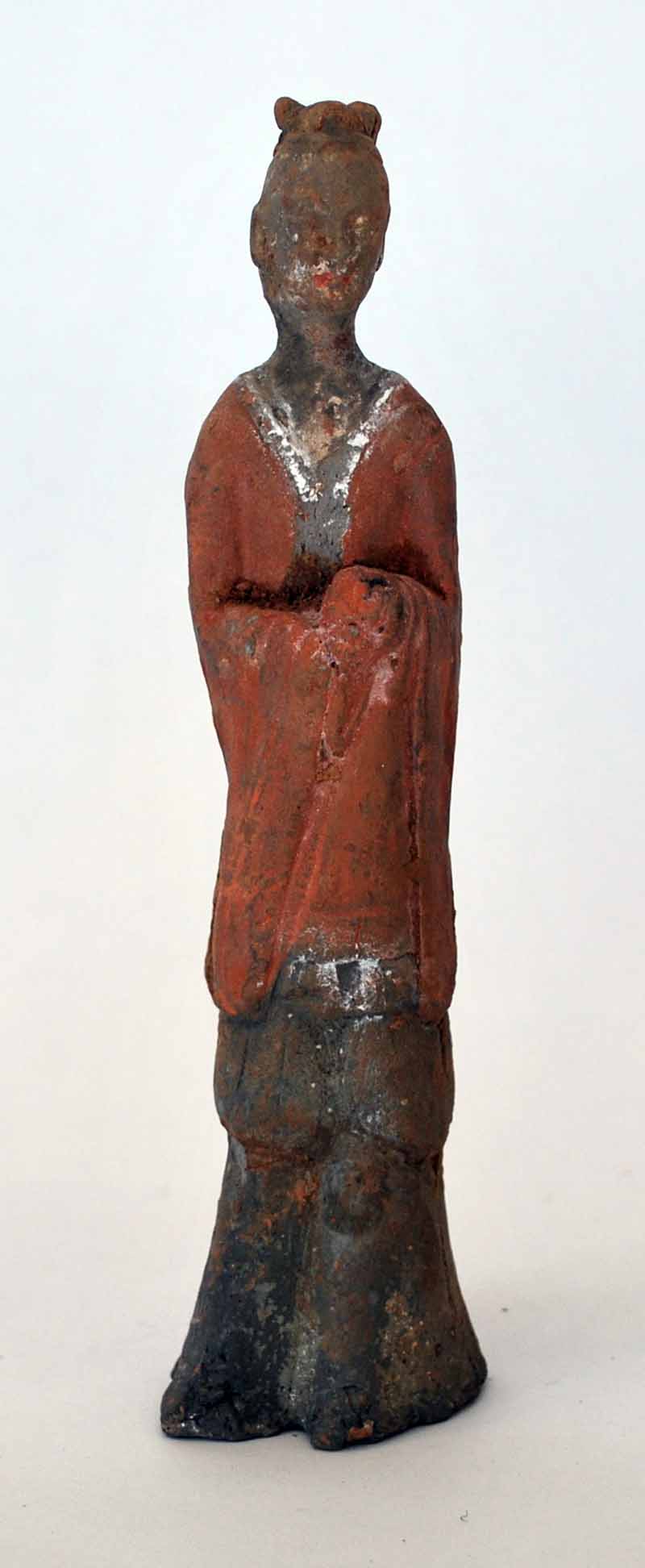 Dating Eastern Wei Period 534-550 AD Grey terracotta, cold painted decoration Height: 19.2cm -