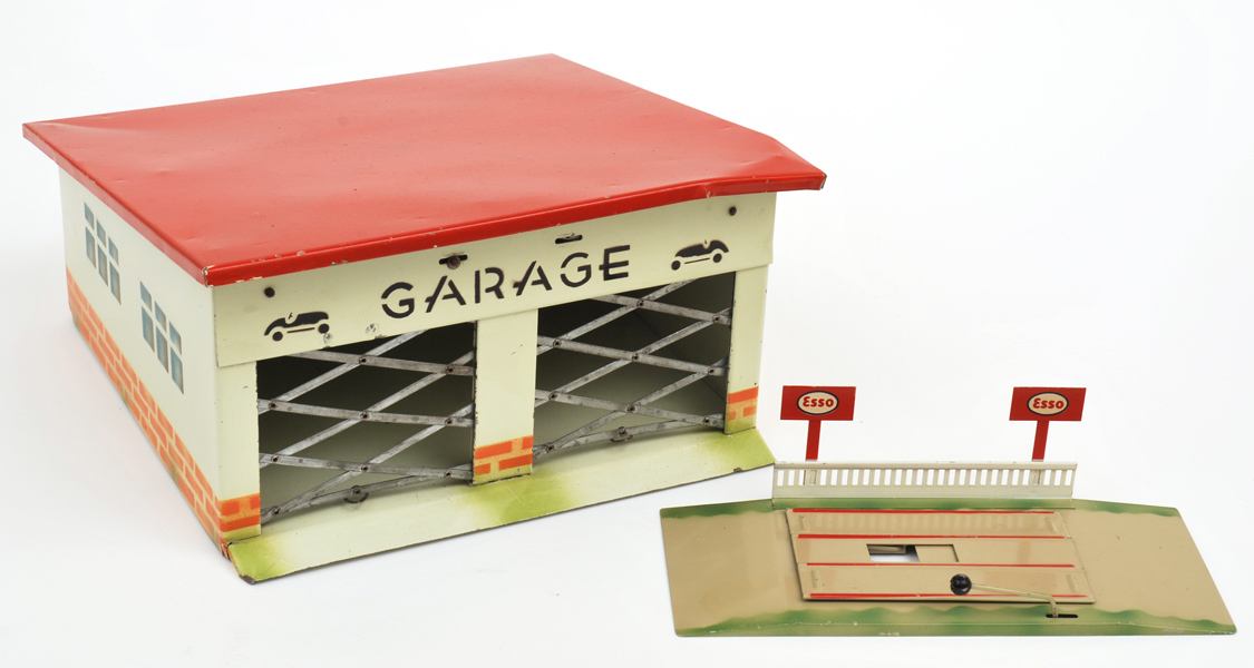 Tin, Garage Is Made In Us Zone Germany, Dent To Right Corner Of Roof, Scissor Doors Operational, Wear Commensurate With Age; And Esso Car-Jack, Made In West Germany, Both Unboxed (VG) (2) -