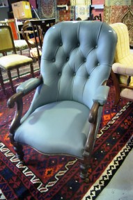 recent re-upholstery in Italian leather, button back -