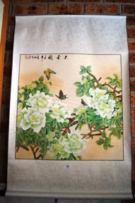 Lot Description:Chinese watercolour scroll on paper of butterflies and flowers with calligraphy