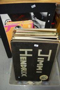 hand painted Jimi Hendrix sign, 9 artworks incl. 3 screenprinted canvas panels -