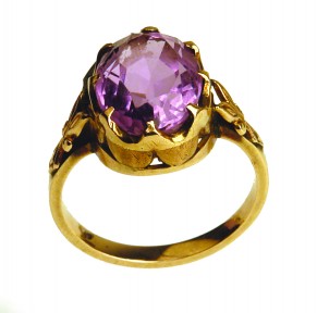 Lot Description:A vintage 9ct. gold and amethyst ring