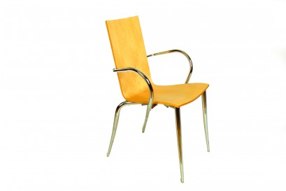 for Driade, natural pale walnut and chromed tubular steel legs and arms. -