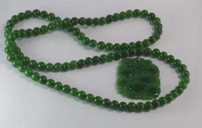 Lot Description:Carved nephrite jade pendant and bead necklace