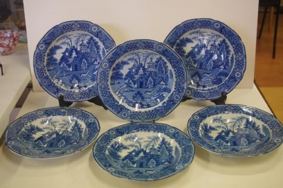D24cm approx, transfer printed in blue & white with 'Spotted Deer' design, maker unknown, C:1810 - 1820.