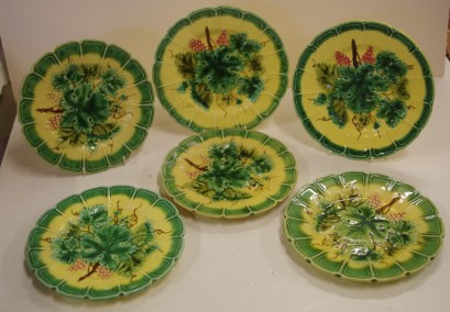 Lot Description:Six French Majolica Sarreguemines leaf plates