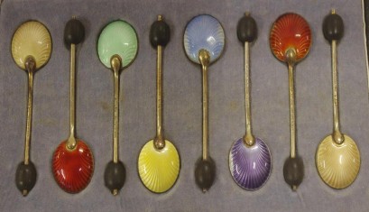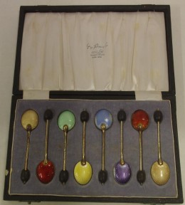 Lot Description:Boxed set of 6 sterling silver and enamel spoons