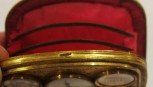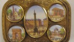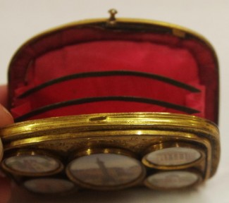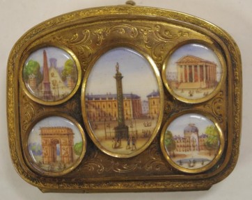 Lot Description:Antique gilt metal purse set with five topographic miniature paintings of Paris, C1850