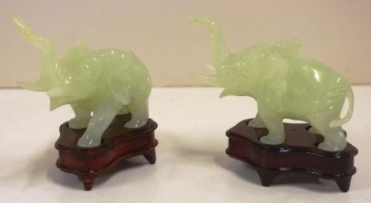 Lot Description:Two Oriental green stone elephants