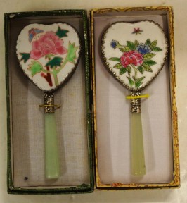 Lot Description:Two Chinese porcelain and green stone hand mirrors