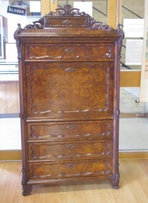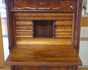 with fall front writing surface, well fitted interior, an upper and lower drawers, 100cm wide, 182cm high -