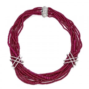 with diamond set clasp and two enhancers. 18ct white gold. Length 41cm. -