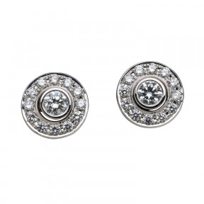 of circular design, with removable centre piece. 18ct white gold. Weight 8.97 grams. Post and butterfly attachments. -