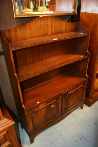 waterfall front, open shelves over 2 panelled door with flame mahogany detail, comes with key, 83cm W x 120cm T -