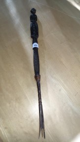 wooden carved figurative handle with bone fork, Lake Sentani, New Guinea's north coast, 20th Century, 58cm L -