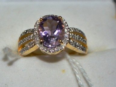 Lot Description:Sterling silver ring set with amethyst & diamonds