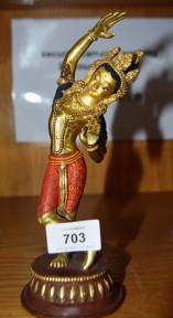 Lot #703 - Gilded & painted bronze of a Buddhist goddess