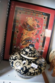 black ground, plus framed aboriginal poster -
