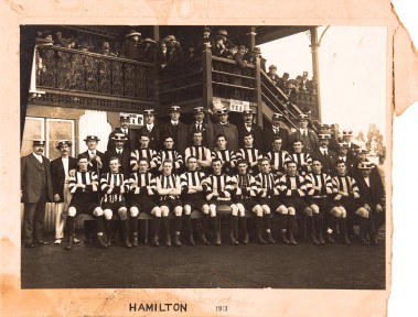 Lot Description:COLLINGWOOD: Team photograph showing the team in their jumpers at Hamilton in 1913