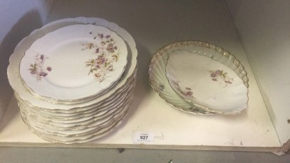 Lot #927 - Shelf: qty vintage Dresden dining plates and sandwich plates etc