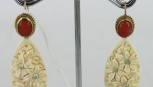 Lot Description:A Pair of Vintage Carved Ivory Coral and Turquoise Earrings