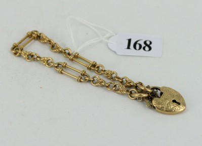 fancy fob chain with padlock clasp; 9ct yellow gold. Weight 16.2g. -