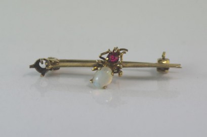 Lot Description:Vintage gold plated brooch with opal set beetle