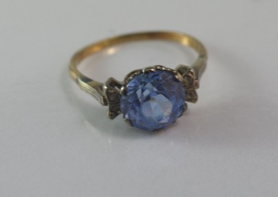 Lot Description:9ct yellow gold ring with blue stone