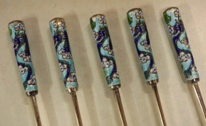 Lot Description:Five Korean sterling silver and enamel tea spoons