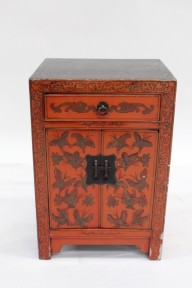 Lot #96 - A Chinese coral red lacquer two door Cabinet with original bronze fittings