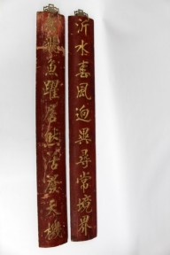 Lot #133 - A Chinese Red Lacquer ten character Couplet 19th/20th century